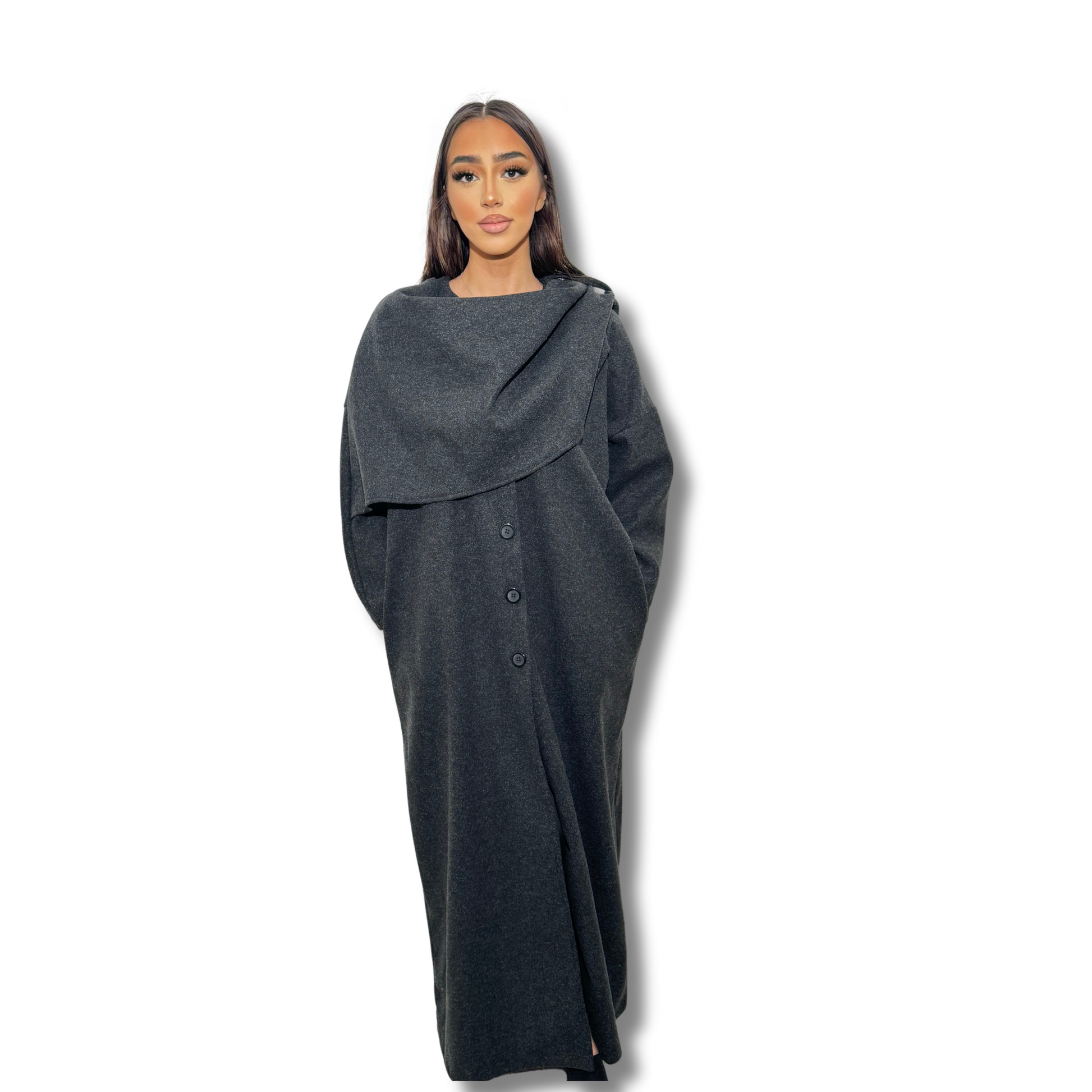 Long cape coat - BLACK
