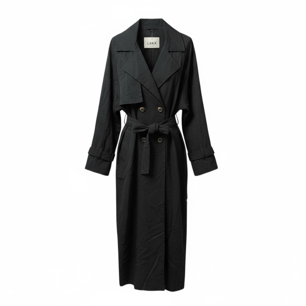 DENIM LONG TRENCH - BLACK